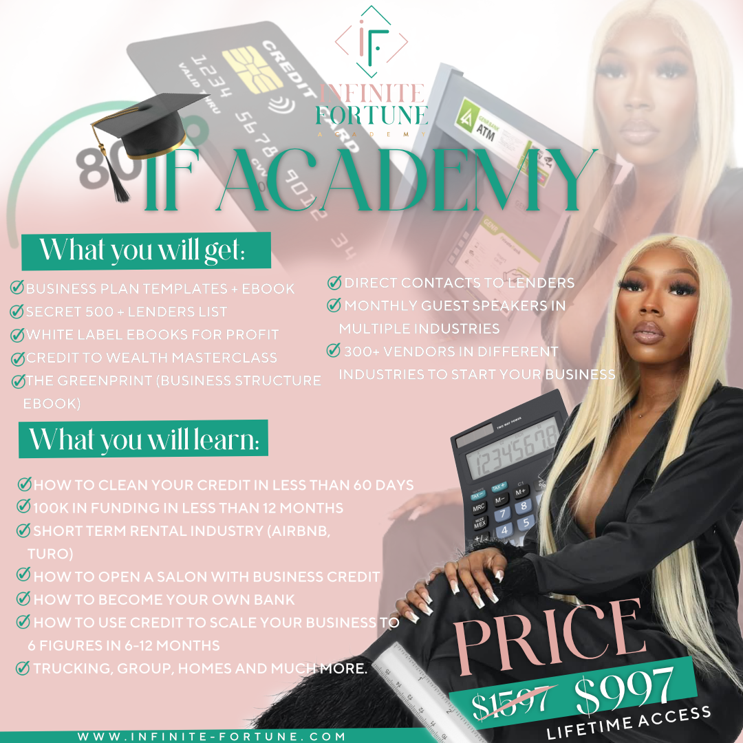 We are Infinite Fortune Academy, we live for credit to wealth. It's a great opportunity for you to learn more about credit as well as become a financial expert. There are many benefits to joining this mentorship, such as access to private groups, exclusive courses, and group and one-on-one support. This academy offers unique information and access that can't be found anywhere else.